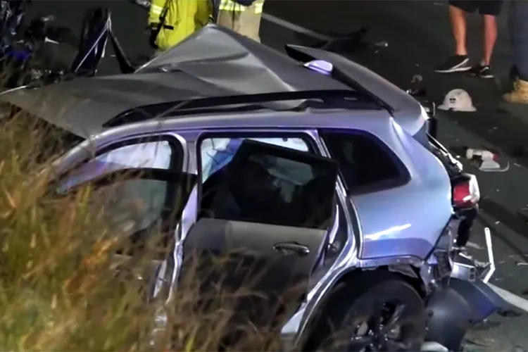 At around 2:50 a.m. local time on Sunday, Sept. 21, a gray Toyota Hilux hit a silver Jeep Cherokee parked on the side of the northbound M1 in the Gold Coast, Australia, according to the Queensland Police.
