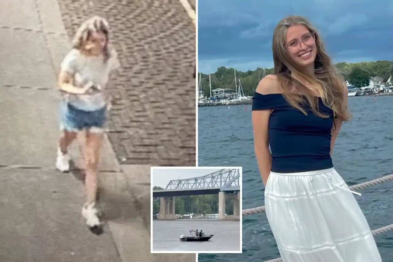 During the search, friends discovered Heinz’s phone, and footage showed her appearing to be on it as she walked near the river. In surveillance images, she was wearing a white shirt and jean shorts, walking alone in the early morning hours.