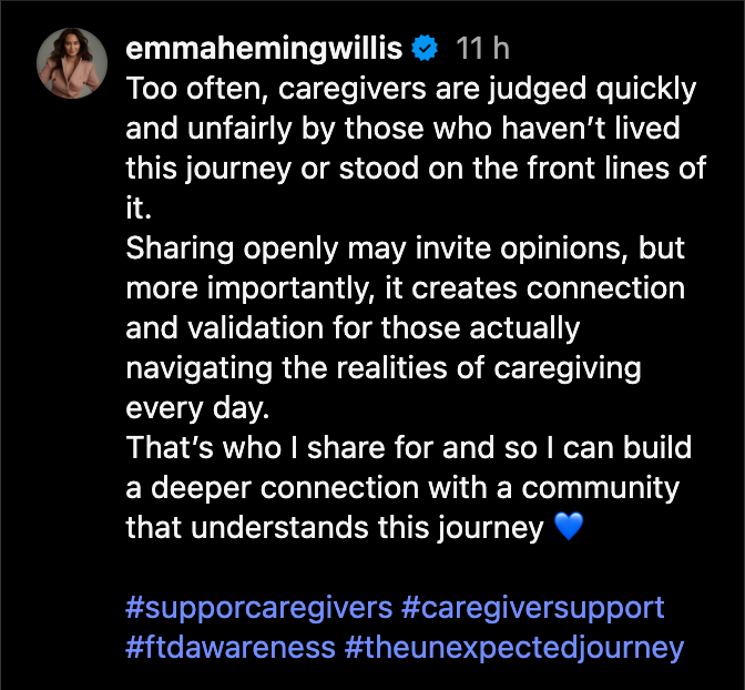 “Too often, caregivers are judged quickly and unfairly by those who haven’t lived this journey or stood on the front lines of it,” she wrote on Instagram after facing online criticism.
