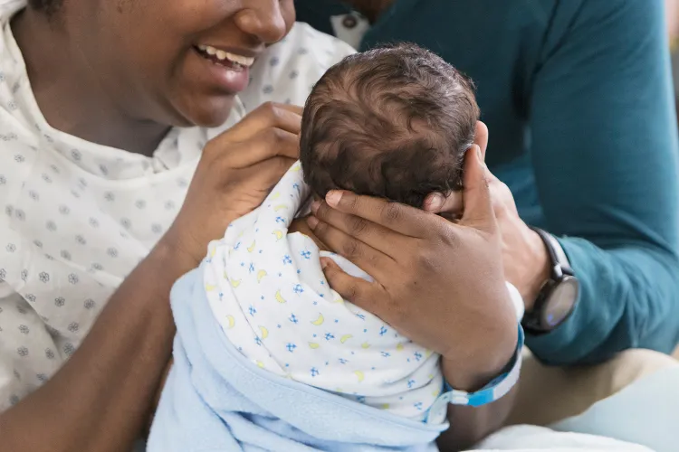 Stock photo of family with a baby at a hospital. Getty Stock Images/Cavan Images RF