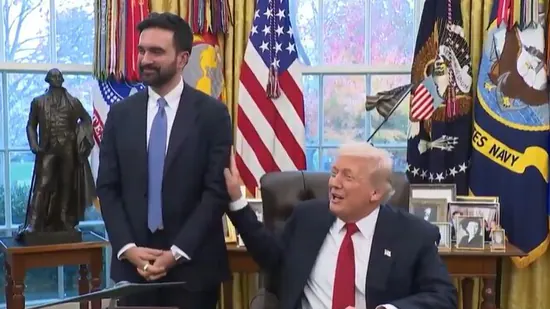 US President Donald Trump and New York mayor-elect Zohran Mamdani shared a notable moment during a media interaction at the White House. While in the Oval Office, a reporter asked the Democratic socialist whether he believed the president was a fascist. As Mamdani began to respond, Trump interrupted with a joke and a laugh. The exchange has since spread widely on social media, where many MAGA supporters claim Trump appeared composed and good-humoured, while Mamdani seemed uneasy.
