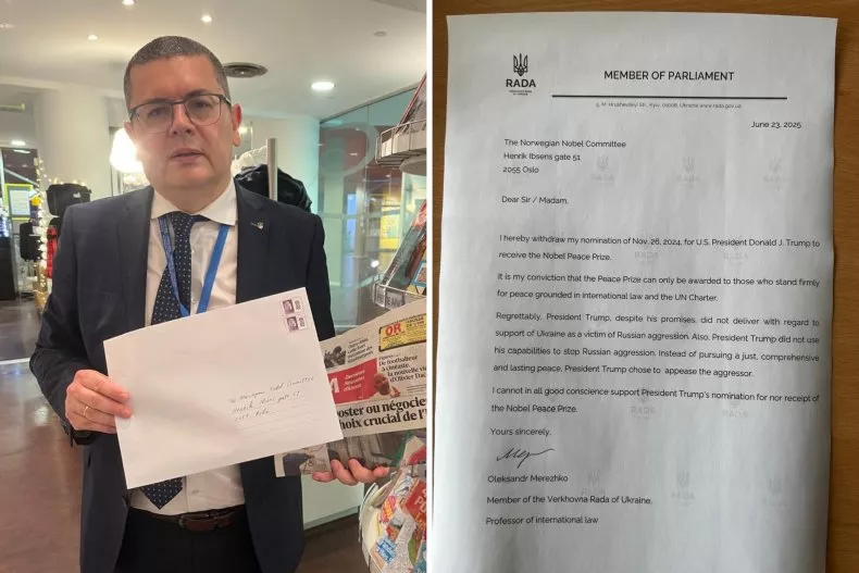A top Ukrainian official who once championed U.S. President Donald Trump for the Nobel Peace Prize has now retracted the nomination, citing frustration over Trump’s handling of the ongoing war between Ukraine and Russia.