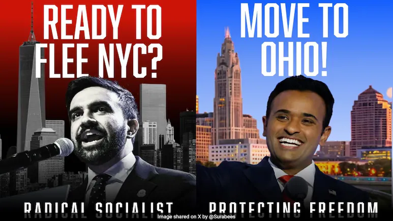“Flee To Ohio”: New York Billboard Battle Pits Ramaswamy Against Mamdani