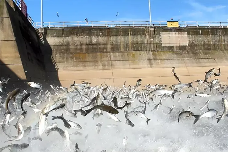 In Kansas, biologists use a combination of electrofishing, gill nets and specialized gear — including an electrified dozer trawl built specifically for carp removal. In 2025, the effort expanded 15 miles downstream. Meanwhile, the Bowersock Dam in Lawrence, Kan., continues to act as a barrier to prevent the fish from moving farther upstream.