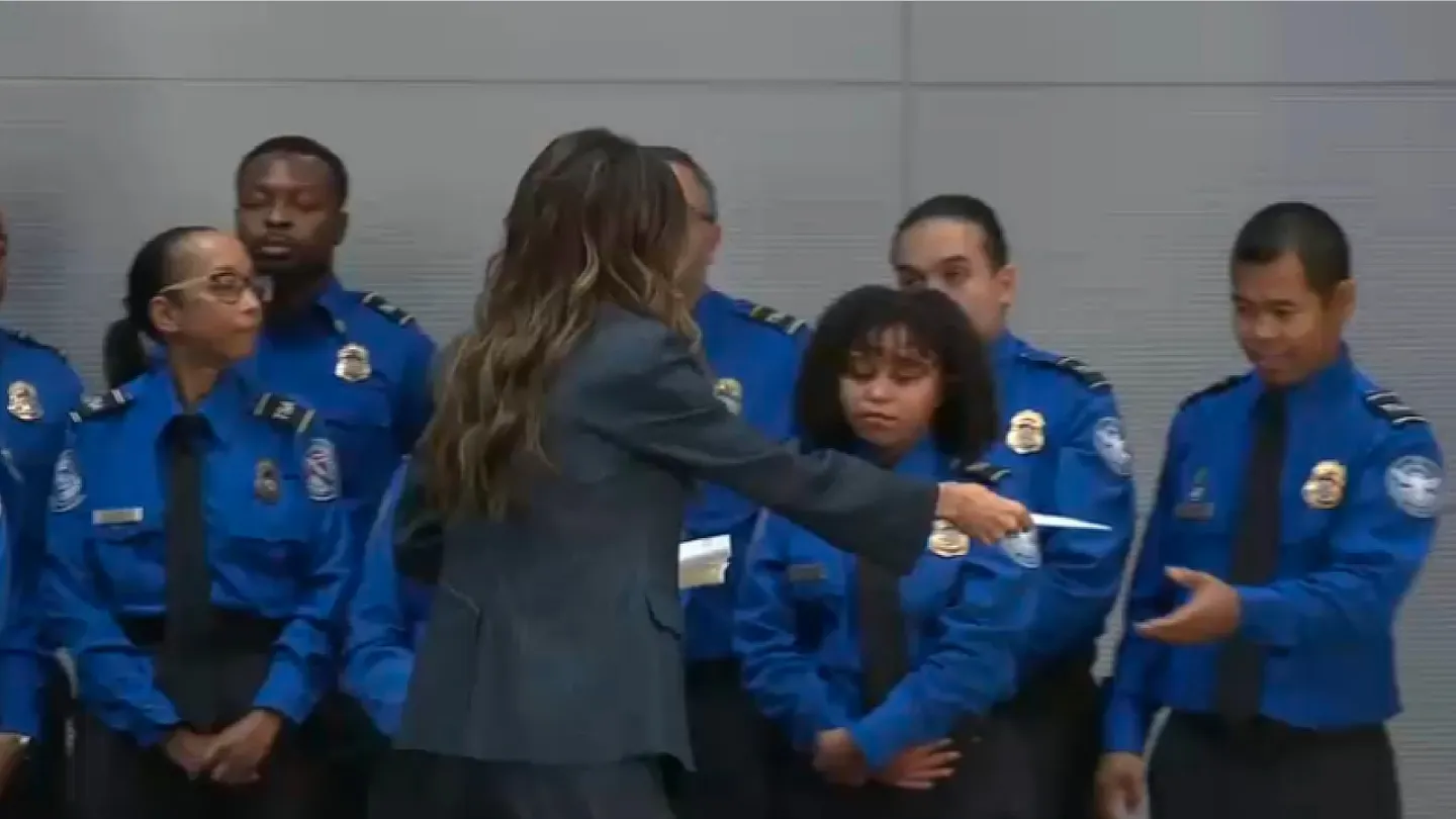 Noem stated that TSA staff who remained on the job during the 43-day shutdown will receive a $10,000 bonus, calling the effort a recognition of their service during a challenging period.