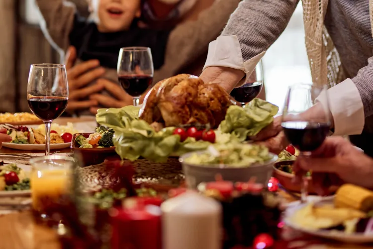 Stock photo of a family having a Thanksgiving meal. Credit : Getty