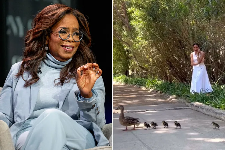 “As he opens the door, the mama duck flies out. And he’s got all the baby ducks in a box,” Oprah recounted. “We’re chasing the mama duck who is in the front yard and has flown to the other side. We’ve got her ducks. Harry’s running after, Meghan gets out, she’s running after, chasing the mom and trying to get her to come back to her ducks.”