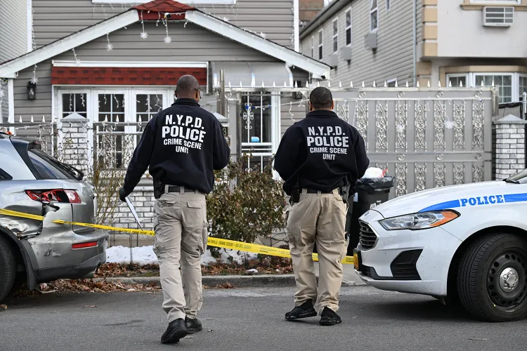 NYPD and Medical Examiner’s Office members at the scene where Charlie Ramraykha was found dead. Kyle Mazza/UNF News/Shutterstock