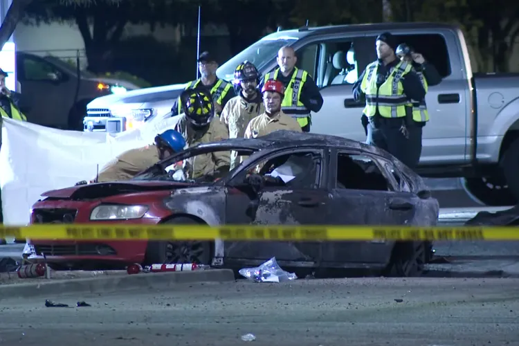 The collision happened just before 12:30 a.m. on Southern Avenue near Dobson Road, Arizona Republic reports. Police said a vehicle traveling west struck the rear of a second car that was pulling out from a private driveway. After the impact, the second vehicle caught fire, authorities confirmed to the outlet.