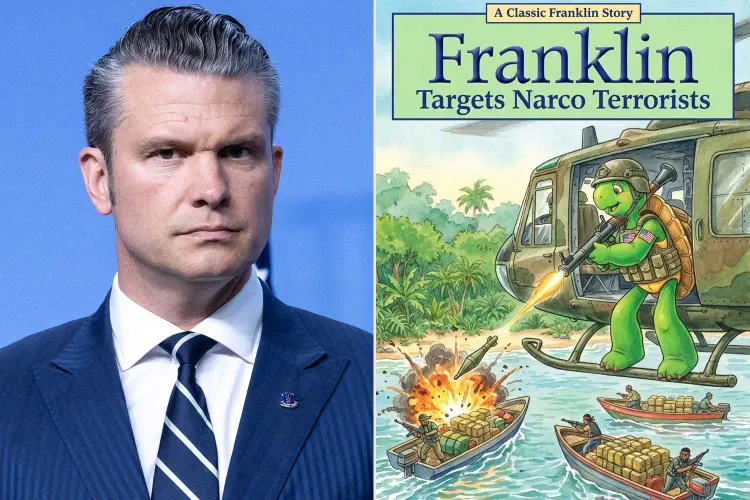 Defense Secretary Pete Hegseth shared an image of the children’s character Franklin the Turtle firing a bazooka at a boat, amid intensifying criticism of U.S. strikes on vessels in the Caribbean.
