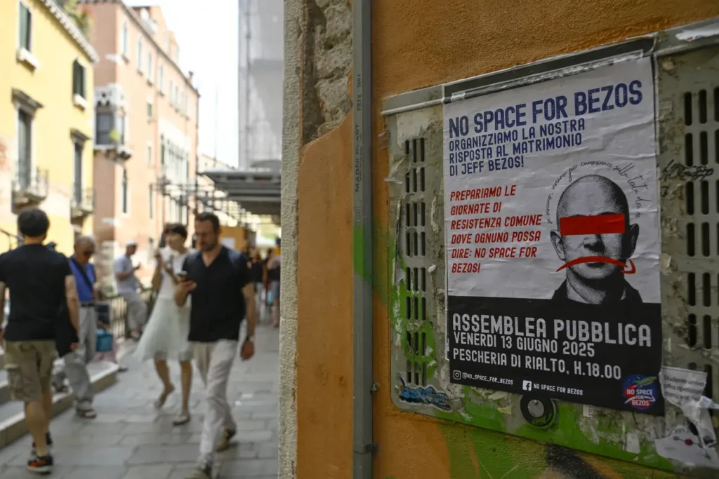 Earlier this month, Venetian residents staged protests against the high-profile wedding, expressing frustration over how such extravagant events contribute to the city’s ongoing struggles with overtourism and rising living costs. Protesters gathered in public squares and near the iconic Rialto Bridge holding signs like “No space for Bezos,” featuring an illustration of a rocket—an apparent jab at his space company, Blue Origin.