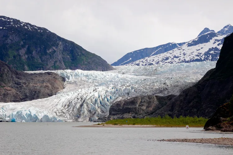 The Mendenhall Glacier, a popular recreation area in Juneau, is described by the U.S. Forest Service as “one of many major glaciers that connect to the vast Juneau Ice Field, a 1,500-square-mile remnant of the last ice age.”