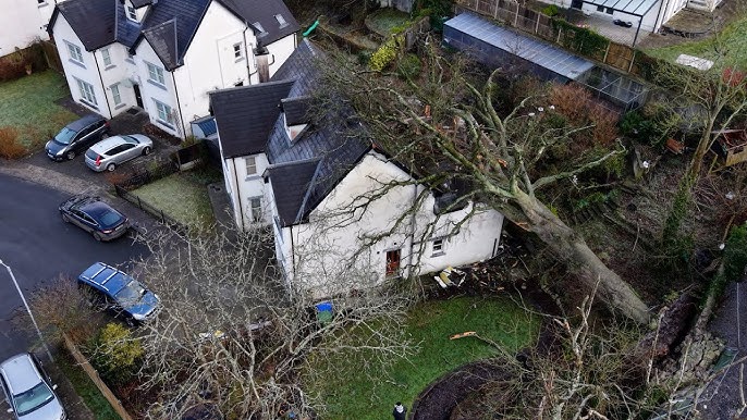 The tree tore through the ceiling of Sander’s bedroom, where he and his dog, Leo, were asleep. Neither was injured, with the trunk stopping just feet from where they were lying.