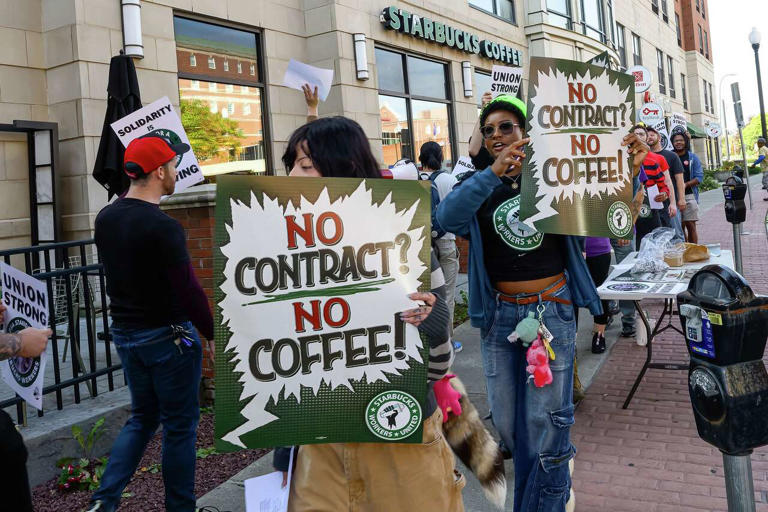 “We’re ready to do what it takes to win a fair contract with better hours to improve staffing in our stores, higher take-home pay so we can pay our bills, and remedies for the hundreds of unresolved unfair labor practice charges for union busting,” said Michelle Eisen, spokesperson for Starbucks Workers United.