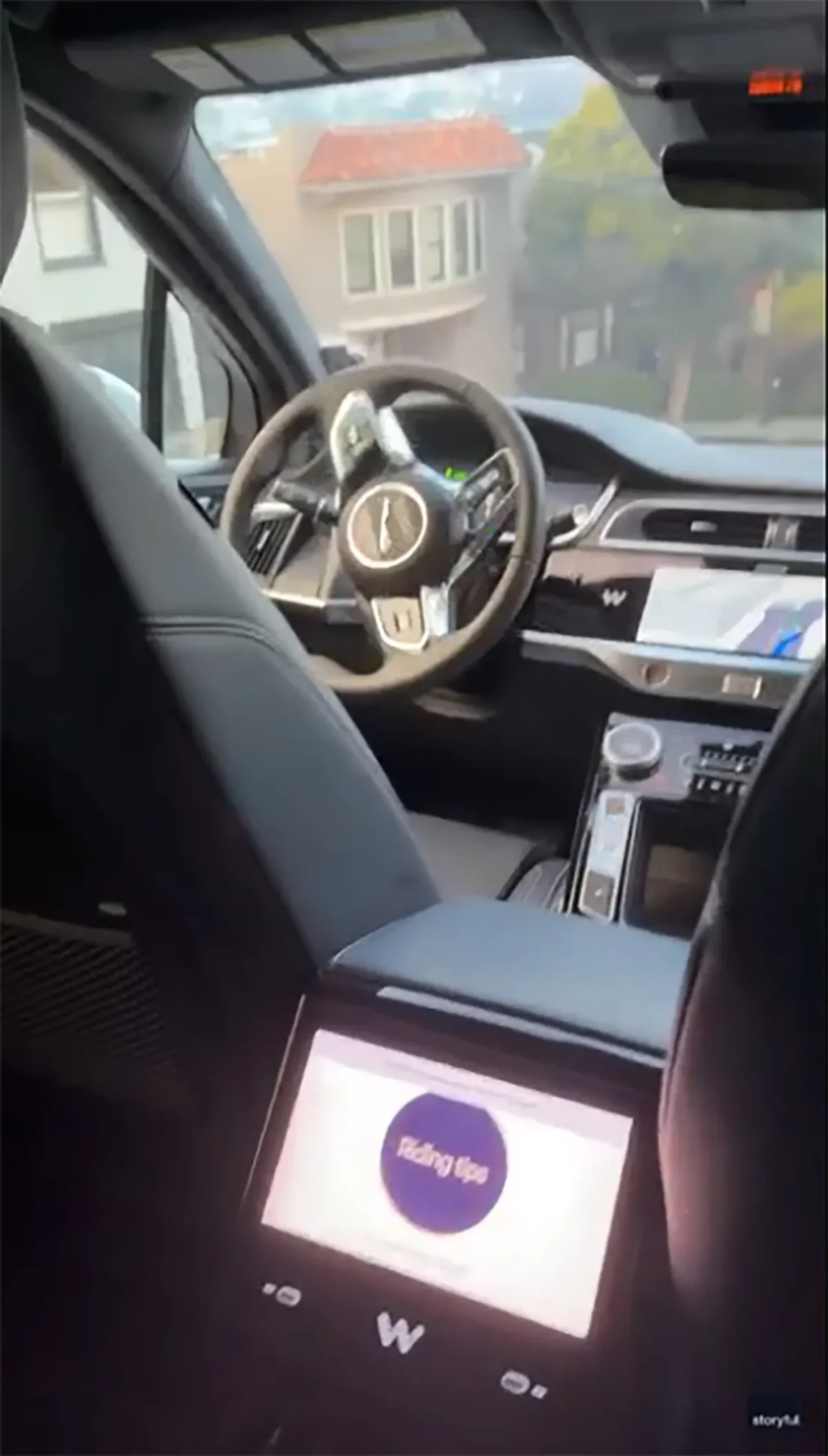 The footage shows Rogers still visibly shaken as the car continues forward, highlighting how unnerving the experience was — especially for someone using an autonomous vehicle for the first time.