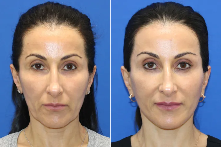 Neda at 24 (left) and at 52 after Vertical restore. Courtesy of Dr. Amir Karam
