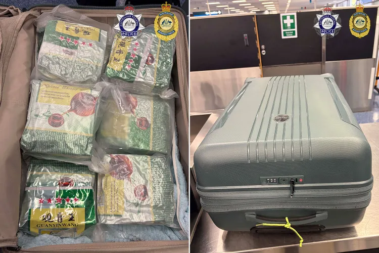 ABF officers alleged they located 18 vacuum-sealed bags labeled “tea” inside her luggage. The bags reportedly contained a clear crystalline substance.